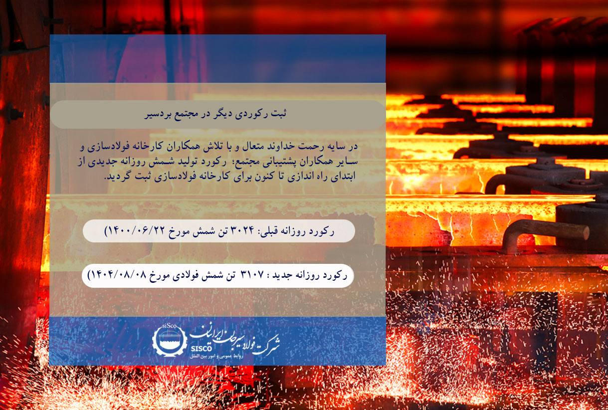 این شرکت توانست طی روز ۱۳ فروردین سال جاری، با ثبت رکورد تولید روزانه شمش فولادی به تناژ ۳ هزار و ۸۶۵ تن، اولین رکورد خود در سال جدید و در راستای عمل به منویات رهبر معظم انقلاب مبنی بر “جهش تولید با مشارکت مردم” را به ثبت رساند.