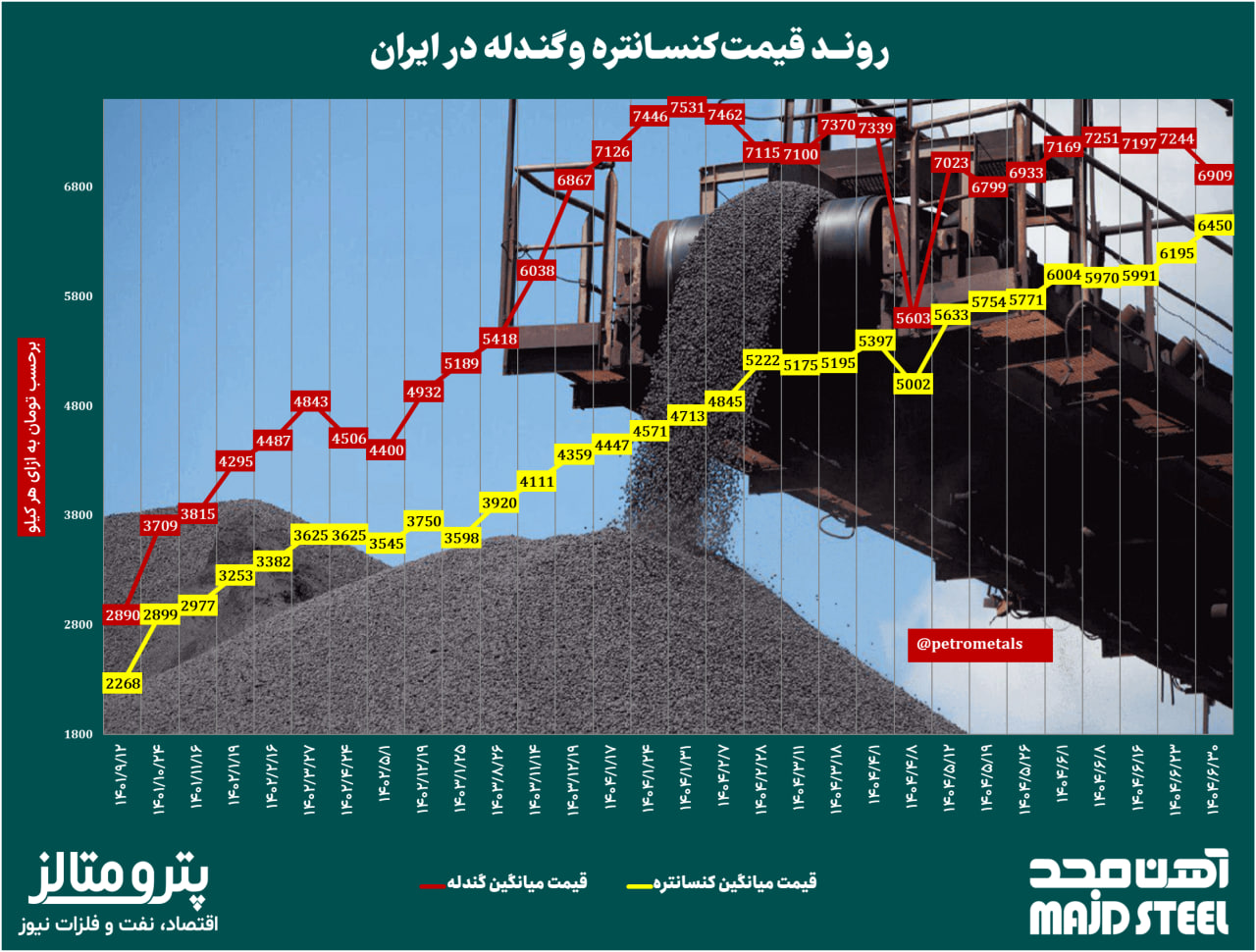 روند قیمت کنسانتره و گندله/ نسبتِ عجیبِ قیمت کنسانتره به گندله + نمودار