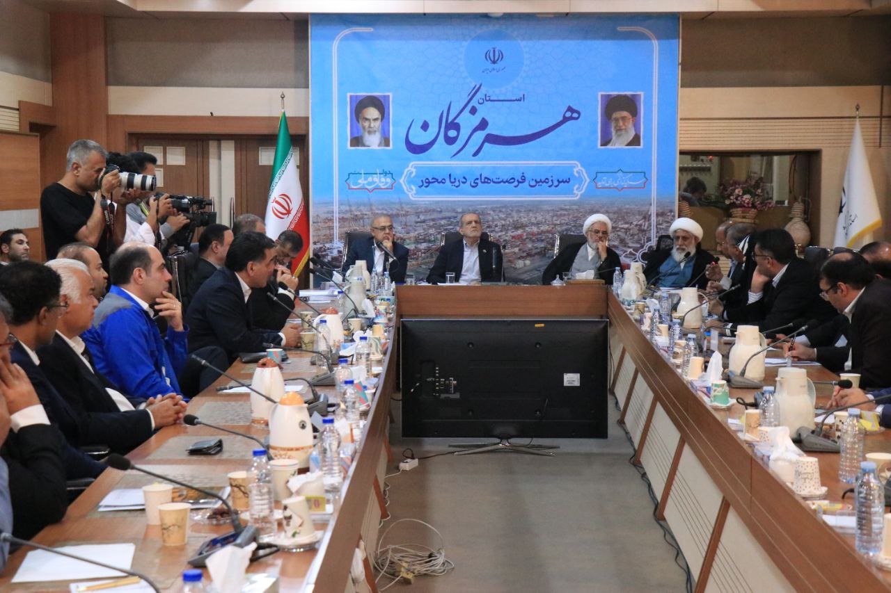رئیسجمهور مسعود پزشکیان صبح روز پنجشنبه دهم مهر ماه در برنامههای سفر استانی به هرمزگان، پای صحبتها و دغدغههای سرمایهگذاران و فعالان اقتصادی این استان، نشست و پس از شنیدن نظراتشان، به ایراد سخنرانی پرداخت. در این جلسه علیرضا رحیم مدیرعامل شرکت فولاد هرمزگان و جمعی از مسئولان این شرکت حضور داشتند.
