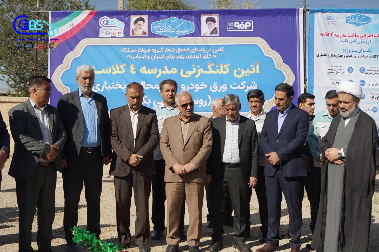 به گزارش پترومتالز، این اقدام در راستای تحقق شعار گروه فولاد مبارکه در توسعه مسئولیت های اجتماعی این گروه انجام شد و پس از امضای تفاهم نامه و برگزاری آیین کلنگ زنی،مقرر گردید مدرسه ای ۴کلاسه توسط شرکت ورق خودرو در روستای کلبیبک از توابع شهرستان بروجن احداث گردد.