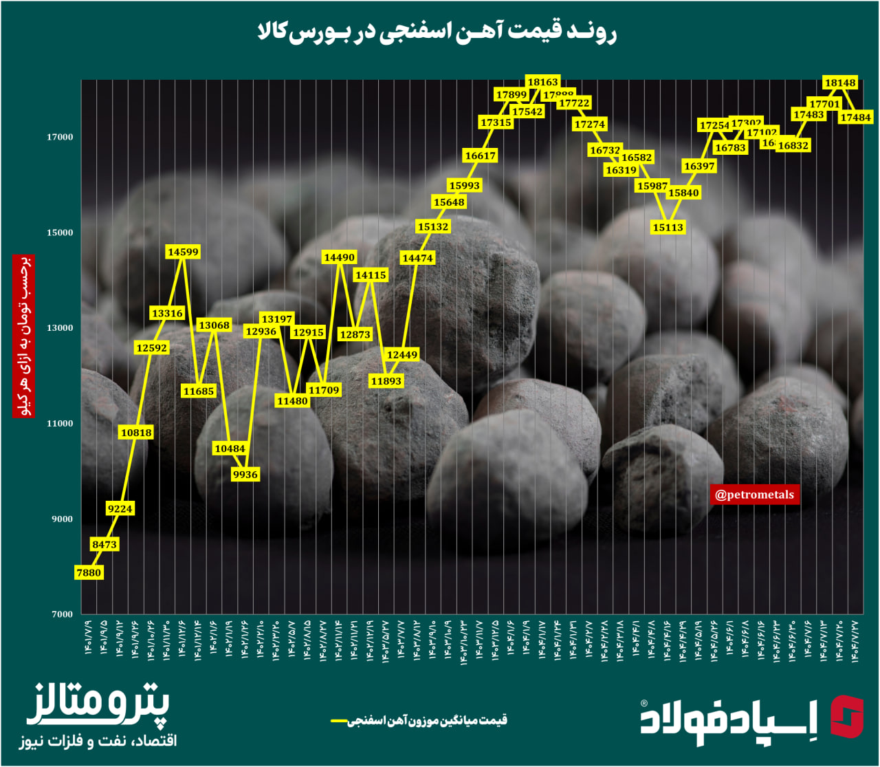 روند قیمت آهن اسفنجی در بورس کالا را در نمودار زیر ببینید:
