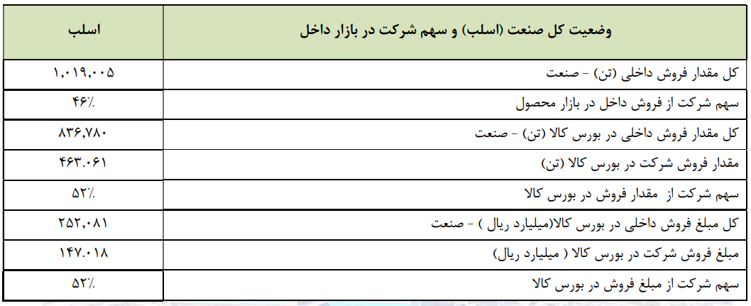 فولاد هرمزگان با فروش بیش از ۴۶۳ هزار تن اسلب در داخل، پیشران اصلی تأمین این محصول در کشور با سهم ۴۶ درصدی است و با توجه به حضور پررنگ در بورس کالا، ۵۲ درصد از عرضه‌های اسلب بورس کالا را به خود اختصاص داده است.