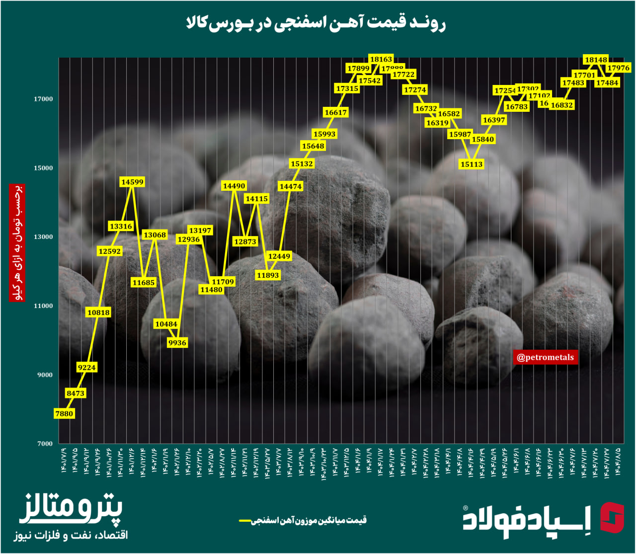 روند قیمت آهن اسفنجی در بورس کالا را در نمودار زیر ببینید: