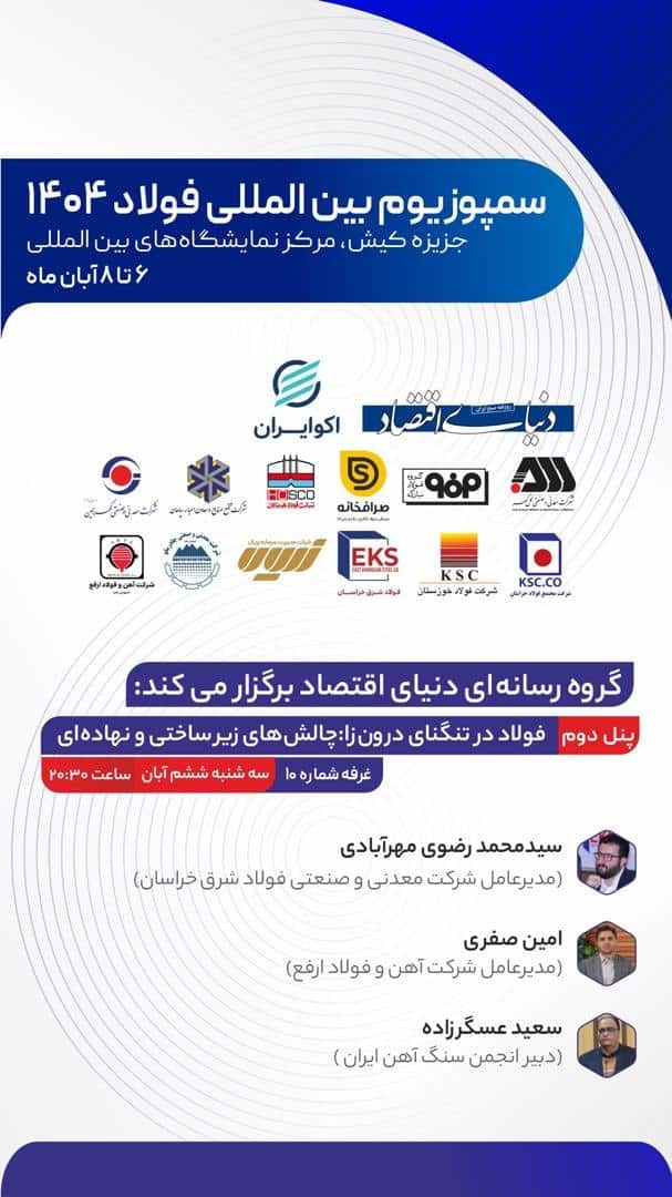 این نشست با حضور مدیران برجسته صنعت فولاد کشور، سهشنبه ۶ آبانماه ساعت ۲۰:۳۰ در غرفه شماره ۱۰ برگزار میشود.