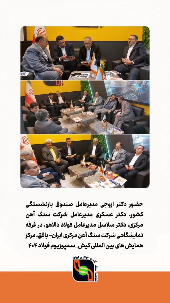 به گزارش پترومتالز، دکتر ازوجی مدیرعامل صندوق بازنشستگی کشور و دکتر سلاسل مدیرعامل فولاد دالاهو با حضور در غرفه شرکت سنگ آهن مرکزی ایران در سمپوزیوم فولاد ۱۴۰۴، با دکتر عسکری مدیرعامل این شرکت دیدار و گفت و گو کردند.