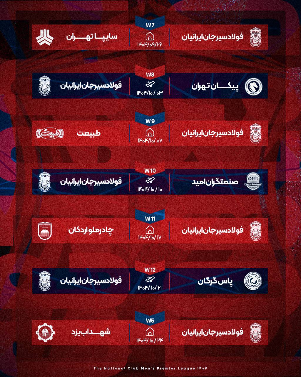 در ادامه دو بازی تیم فولاد سیرجان در لیگ برتر به شرح زیر است: