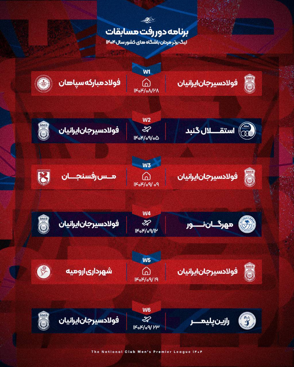 هفته دوم: پنجم آذرماه، در استان گلستان با تیم استقلال گنبد به رقابت خواهد پرداخت.