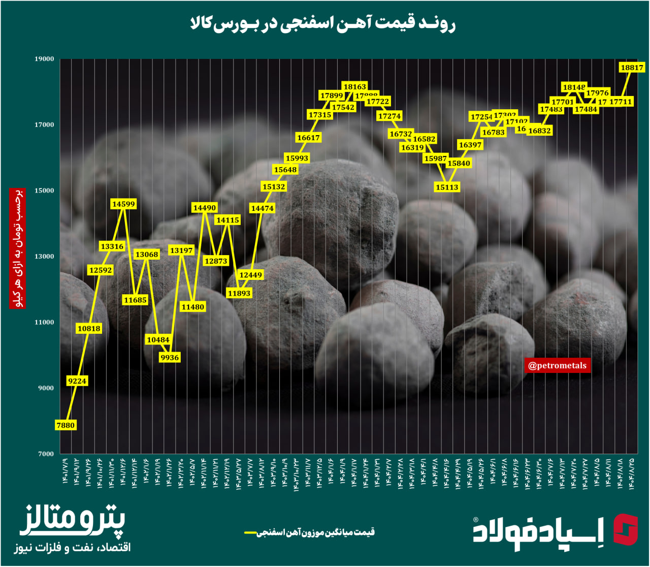 روند قیمت آهن اسفنجی در بورس کالا را در نمودار زیر ببینید: