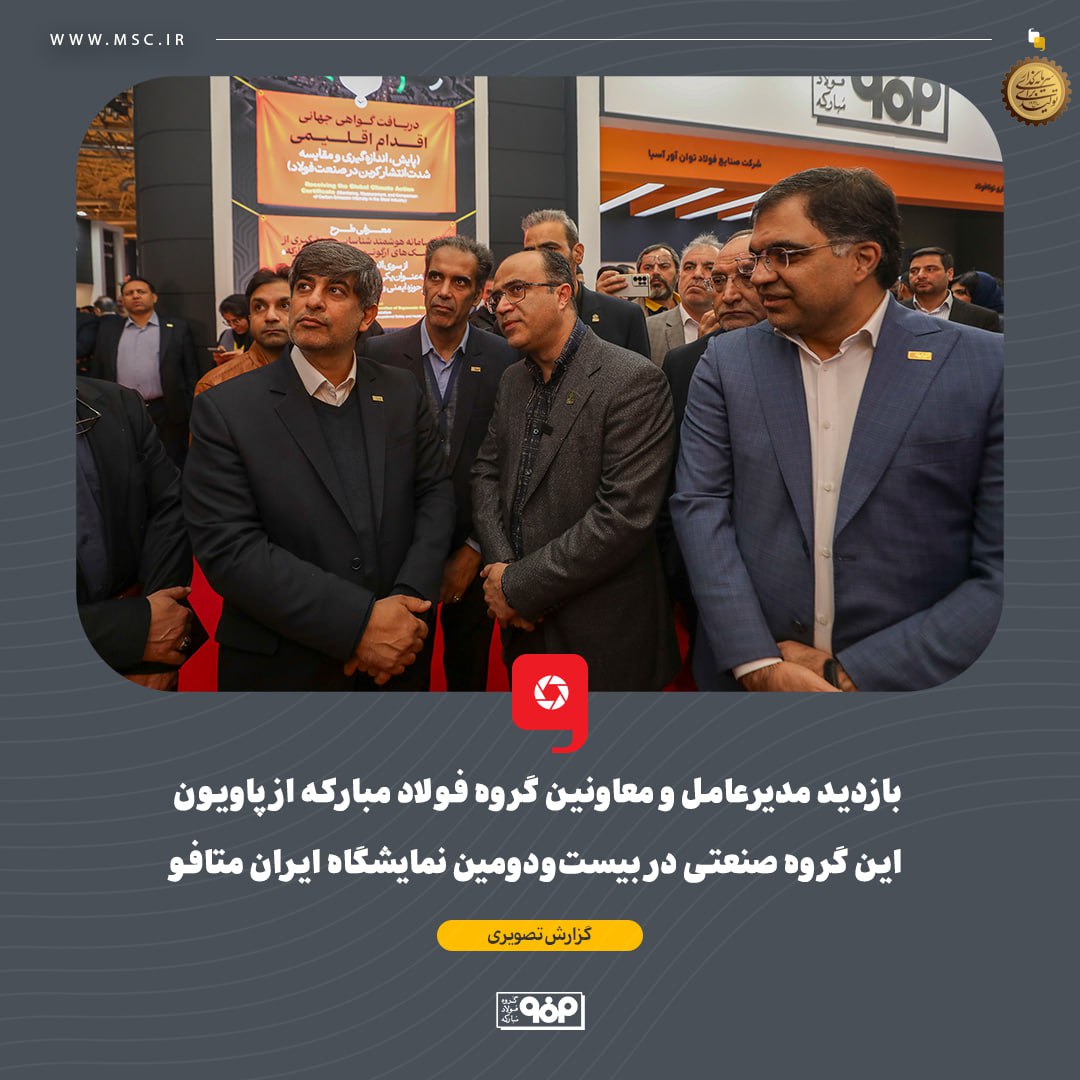 به گزارش پترومتالز، سعید زرندی، مدیرعامل گروه فولاد مبارکه، سلیمی، معاون بهره‌برداری، حیدری، معاون فروش و بازاریابی و جمعی از مدیران این گروه صنعتی از پاویون شرکت‌های گروه فولاد در بیست‌و‌دومین نمایشگاه بین‌المللی ایران متافو بازدید کرد.