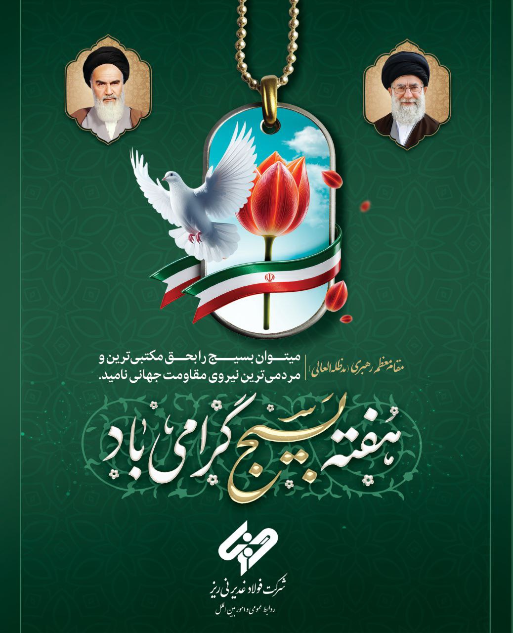 هفته بسیج، یادآور مکتبی است که در لحظههای سخت تاریخ این سرزمین، مردان و زنانی را به میدان آورد که جان خود را بیهیچ چشمداشتی برای پاسداری از آب و خاک ایران فدا کردند؛ مکتبی که به برکت هدایتهای حکیمانه رهبر معظم انقلاب، همچنان پرچمدار ایستادگی، ایمان و تعالی ایران اسلامی است.