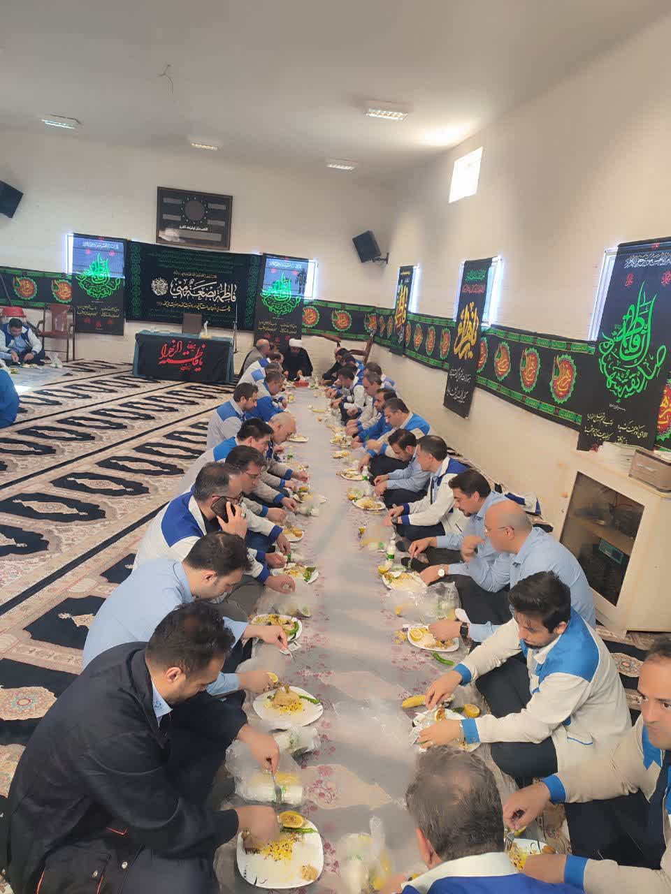 در پایان این مراسم، شرکت کنندگان در سفره حضرت صدیقه طاهره (س) حاضر شدند. برگزاری چنین مراسمی در محیط های کاری، گواهی بر ترویج و زنده نگه داشتن فرهنگ عاشورایی و فاطمی در تمامی سطوح جامعه است.