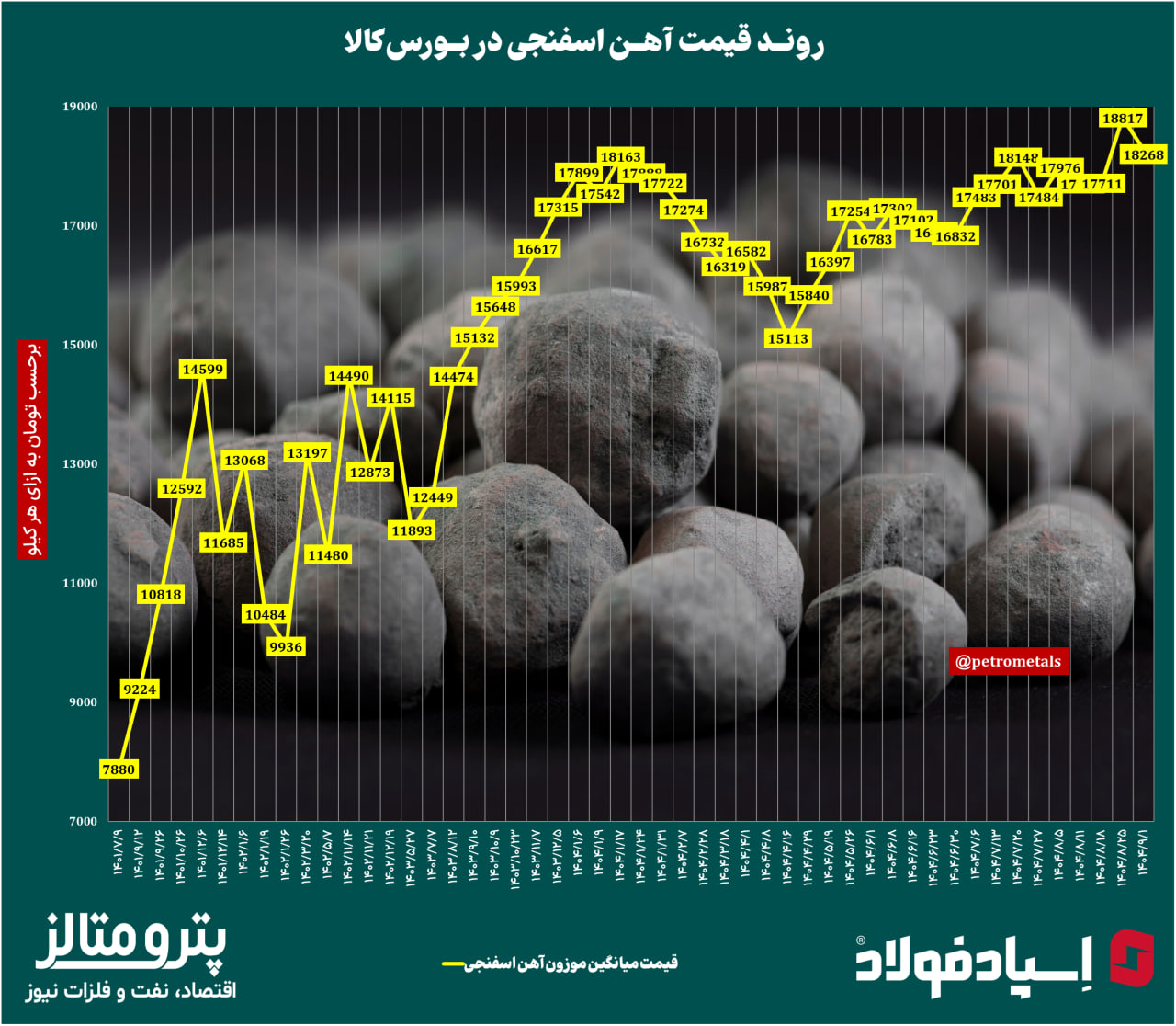 روند قیمت آهن اسفنجی در بورس کالا را در نمودار زیر ببینید: