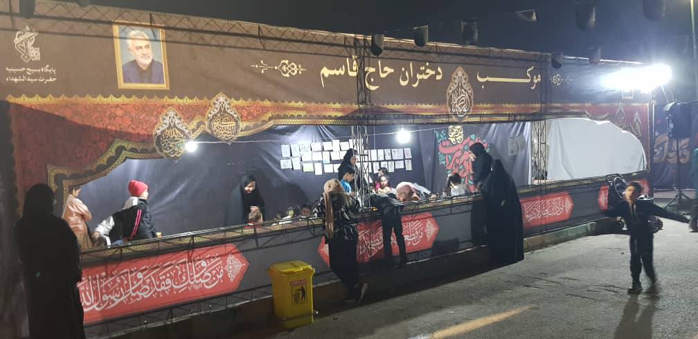 گفتنی است، مجاور موکب یاد شده موکب دختران حاج قاسم در قالب نقاشی برای کودکان و مشاوره برای نوجوانان طراحی شده بود.