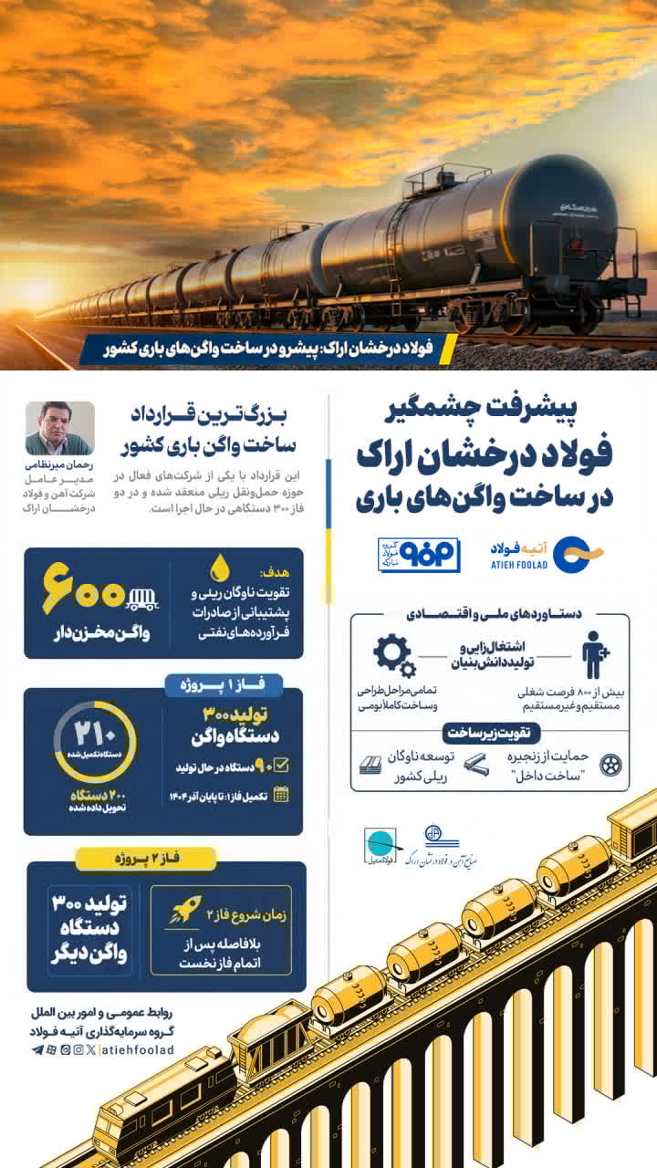 حماسه “ساخت ایران” در قلب صنعت حمل‌ونقل؛ فولاد درخشان اراک پیرو در بزرگترین پروژه ساخت واگن باری