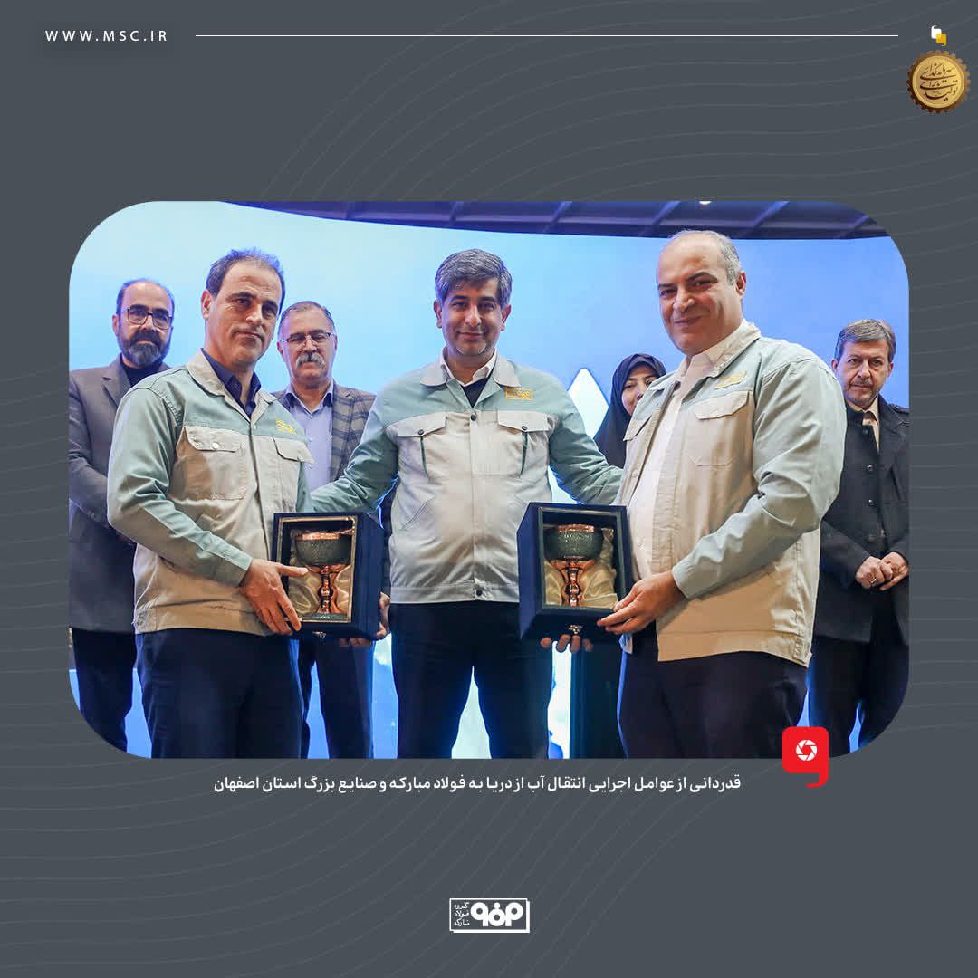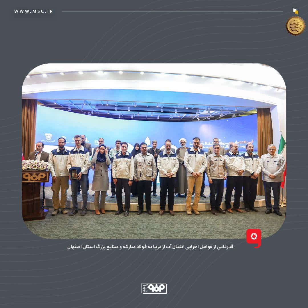 قدردانی از عوامل اجرایی انتقال آب از دریا به فولاد مبارکه و صنایع بزرگ استان اصفهان