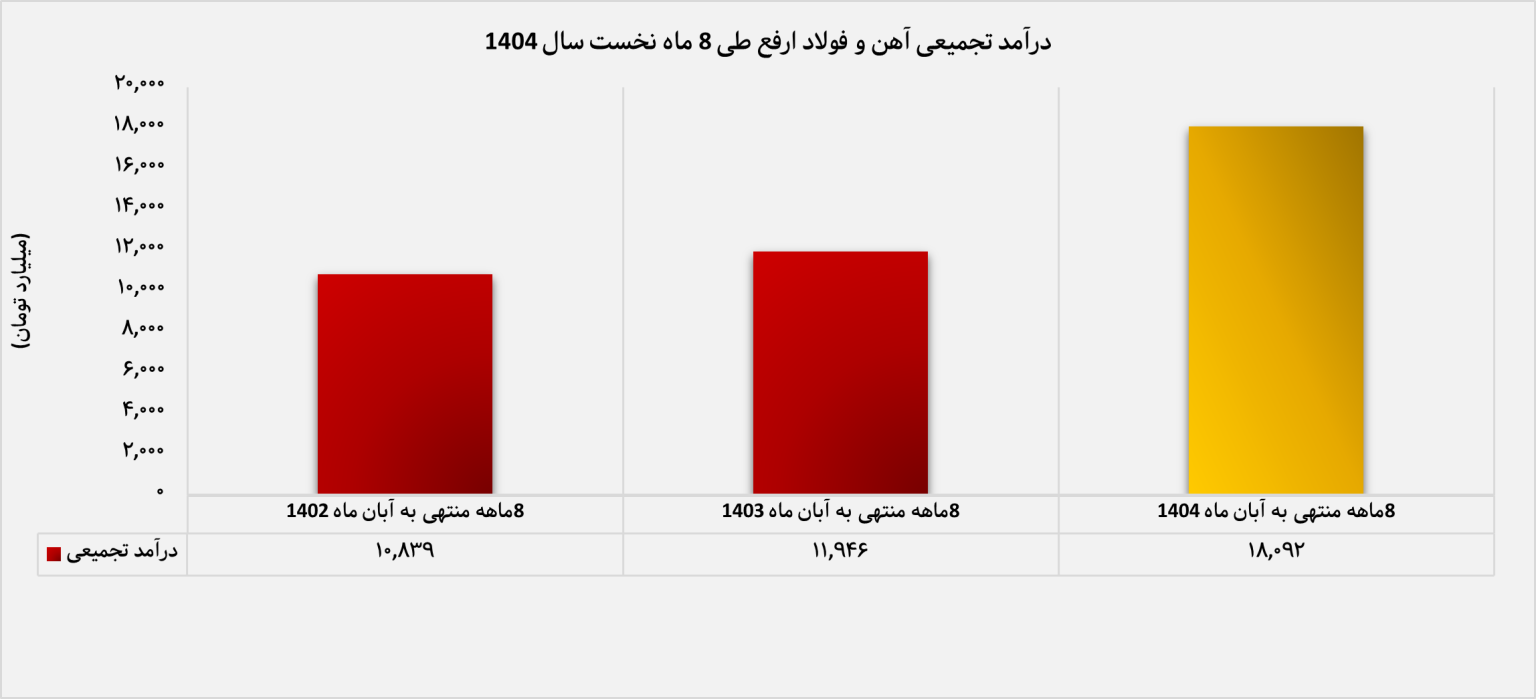 ارفع در آبان ماه با اتکا به فروش شمش فولادی در بازار داخلی، موفق به ثبت درآمد ۲ هزار و ۵۸۰ میلیارد تومانی شد؛ رقمی که در مقایسه با میانگین هفتماهه نخست سال رشد ۱۶ درصدی را نشان میدهد و بیانگر بهبود بهرهوری خطوط تولید و تقویت تقاضا در بازار داخلی است.