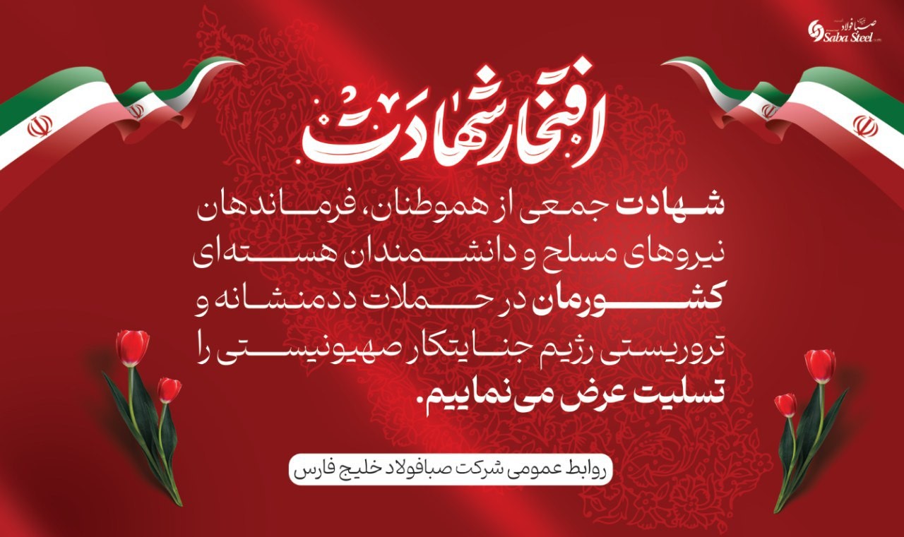 پیام تسلیت مدیرعامل شرکت صبافولاد خلیج فارس در پی شهادت جمعی از هموطنان، فرماندهان نیروهای مسلح و دانشمندان هسته‌ای در حملات رژیم صهیونیستی
