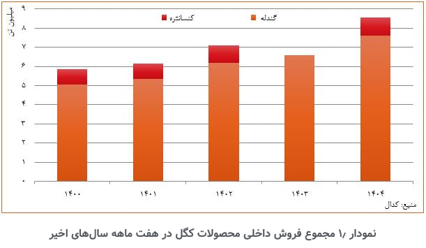 نگاهی به کارنامه فروش «کگل» در سالهای اخیر نیز از رشد مستمر فروش و افزایش درآمدها حکایت دارد. برای نمونه، فروش داخلی گندله به عنوان محصول نهایی این شرکت در هفت ماهه امسال بیش از هفت میلیون و ۵۹۲ هزار تن بود که در مقایسه با مدت مشابه سال قبل ۱۵ درصد و در بازه پنج ساله ۵۱ درصد افزایش یافت.
