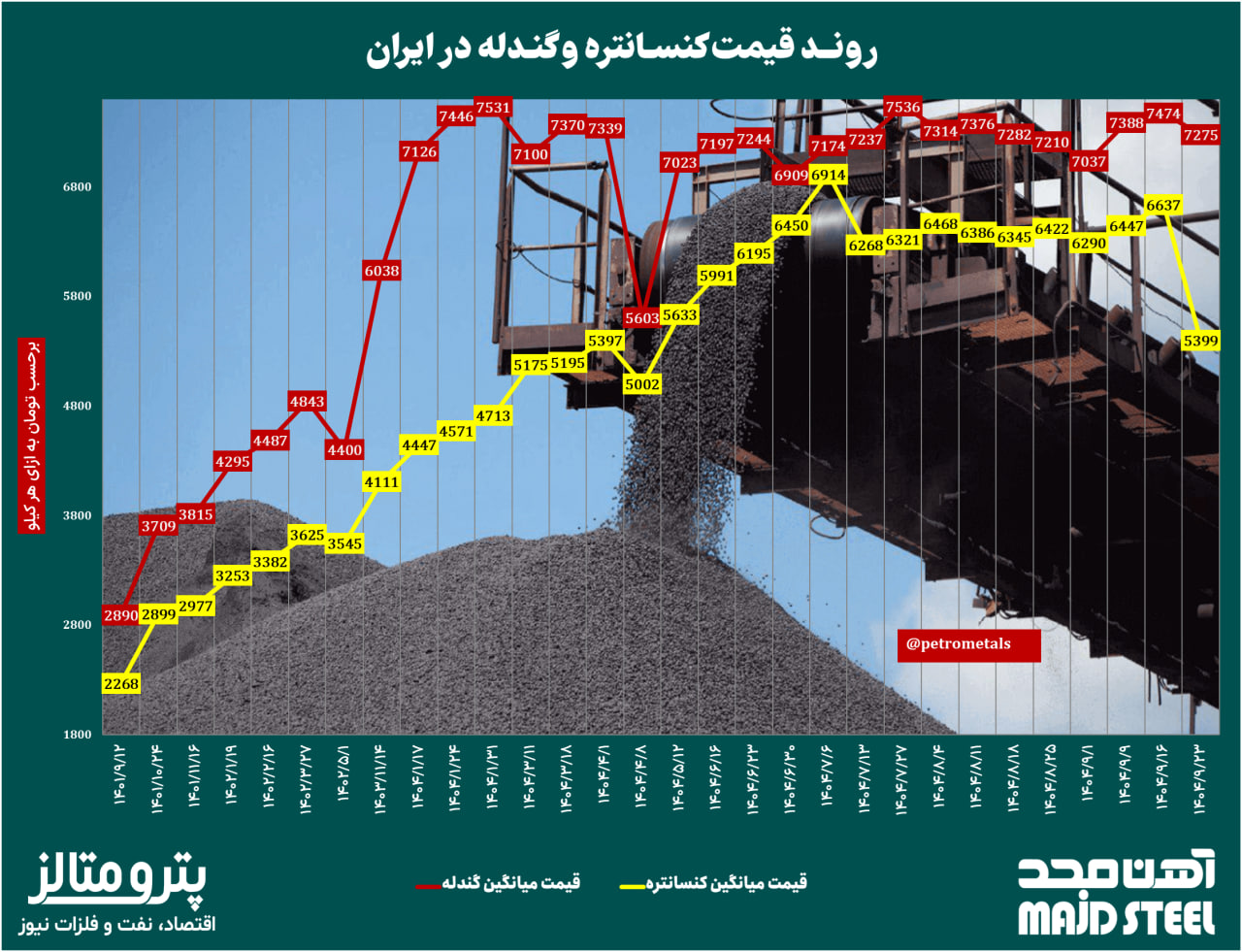 روند قیمت کنسانتره و گندله در بورس کالا را در نمودار زیر ببینید: