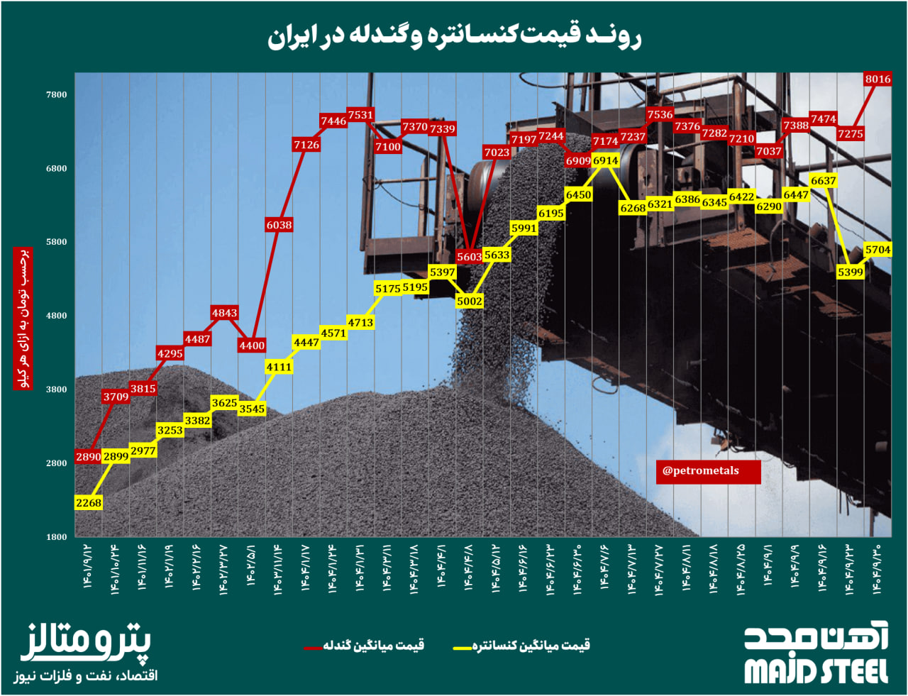 روند قیمت کنسانتره و گندله در بورس کالا را در نمودار زیر ببینید: