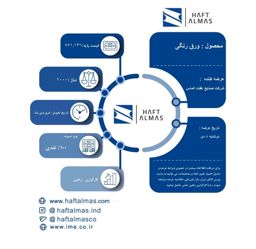 جزئیات عرضه ورق رنگی شرکت صنايع هفت الماس در بورس کالا