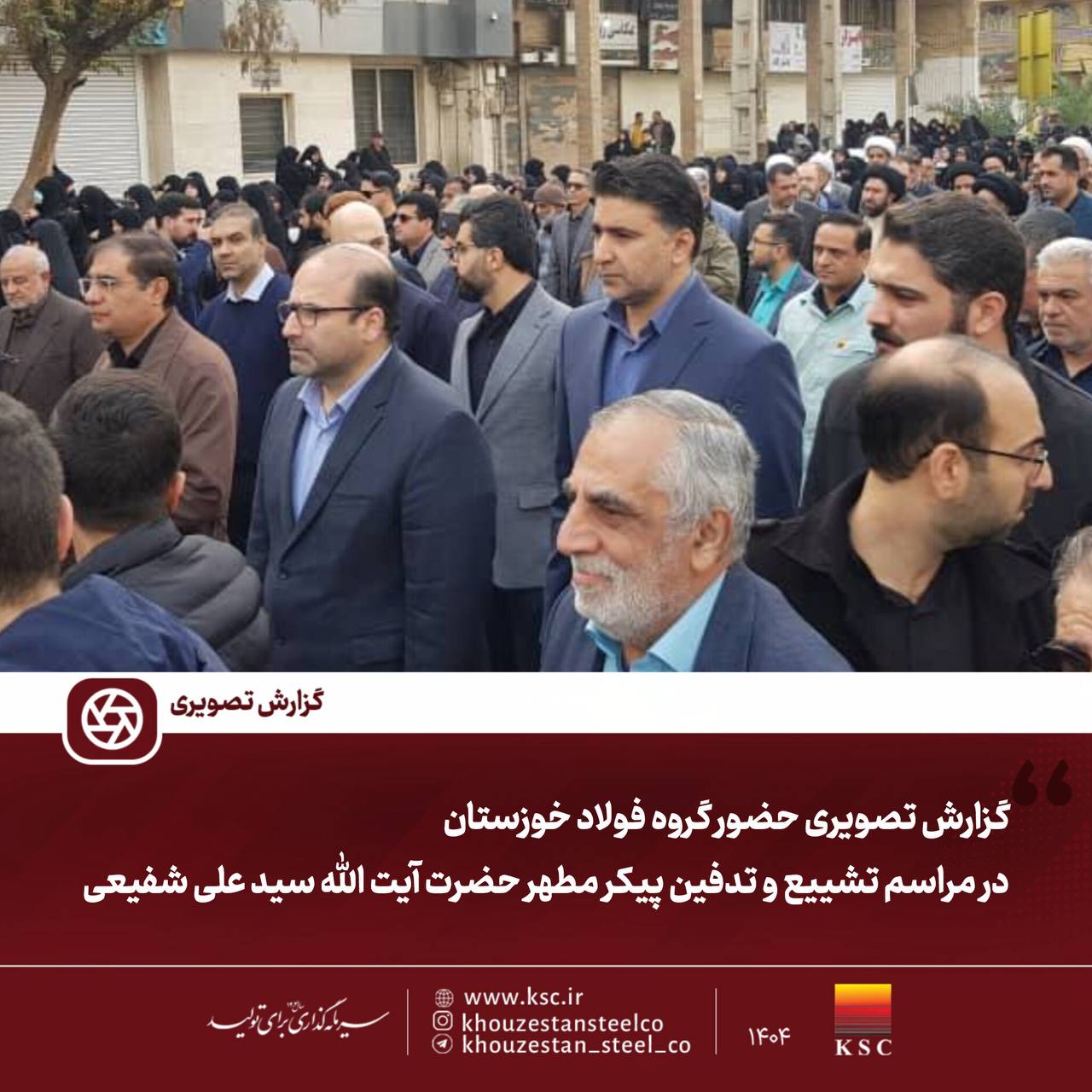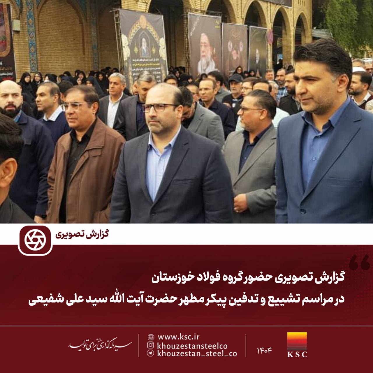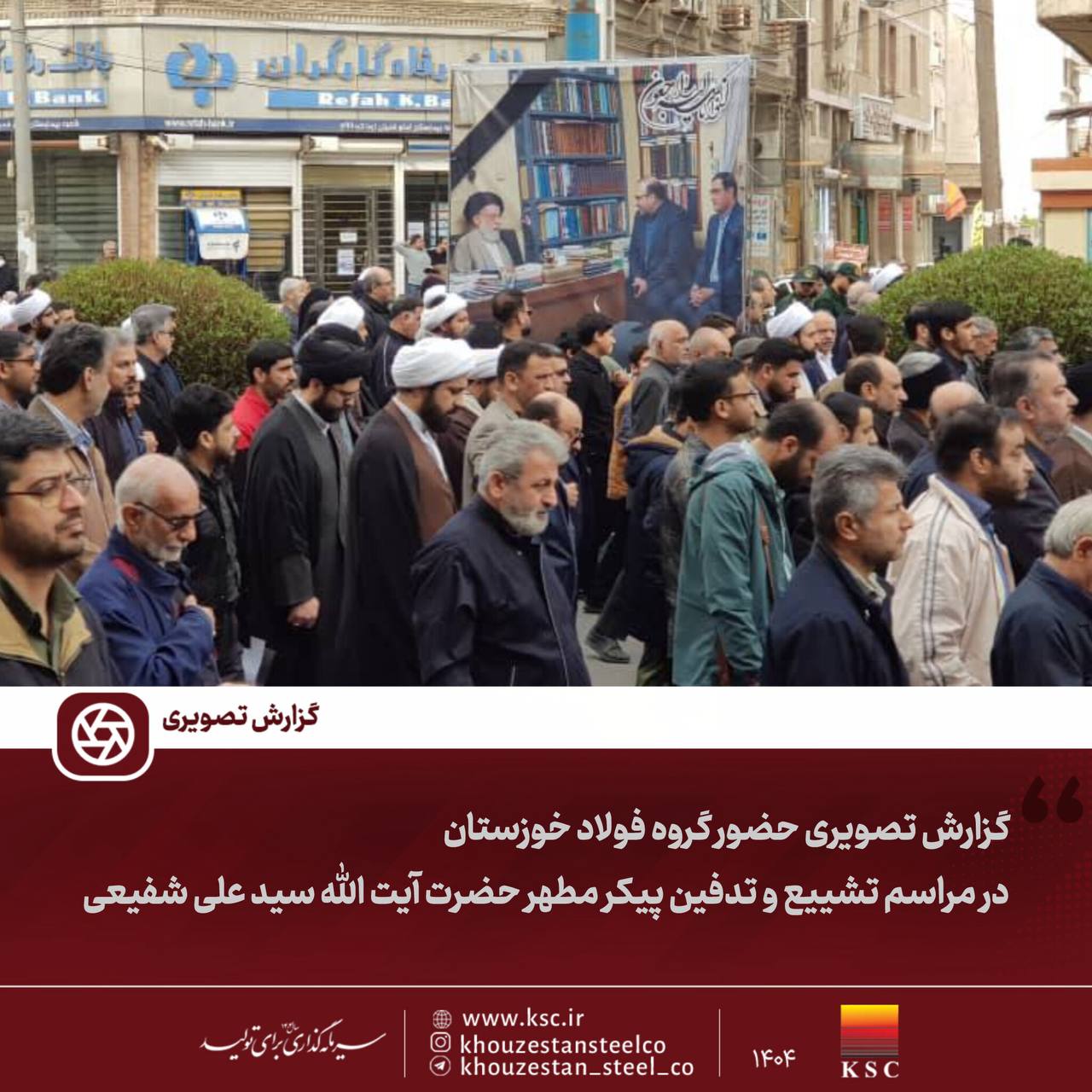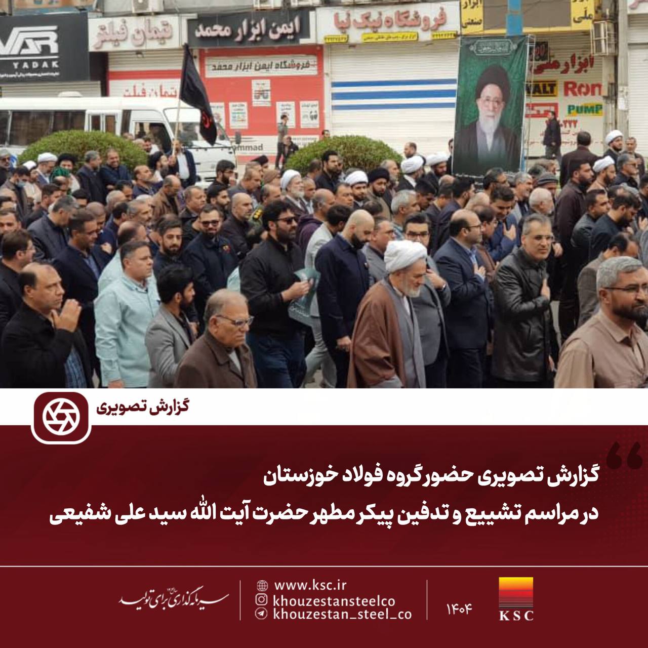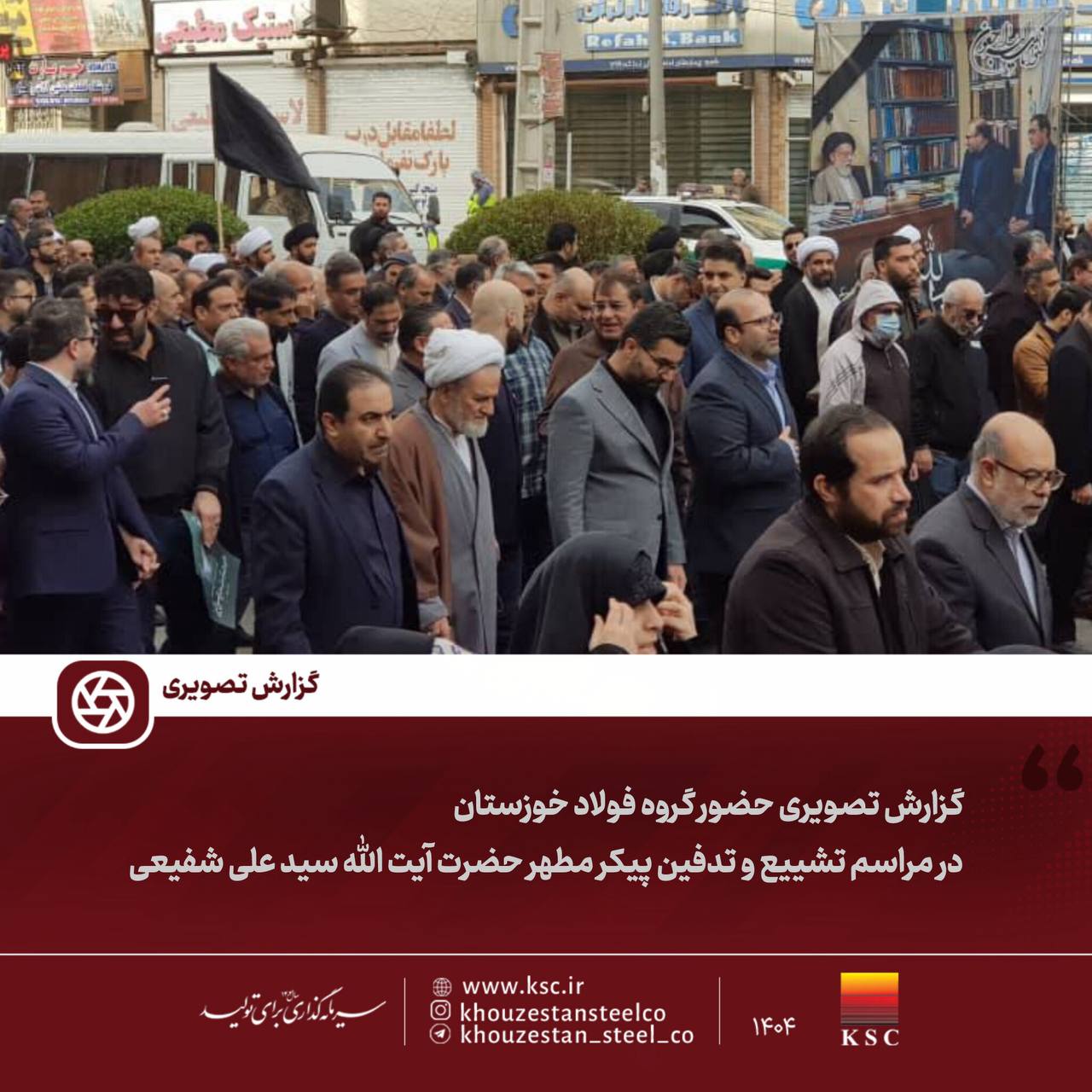 حضور گروه فولاد خوزستان در مراسم تشییع و تدفین پیکر مطهر حضرت آیت الله سید علی شفیعی