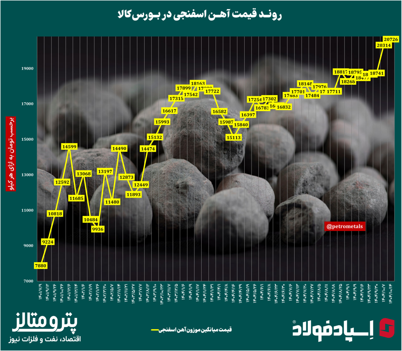 روند قیمت آهن اسفنجی در بورس کالا را در نمودار زیر ببینید: