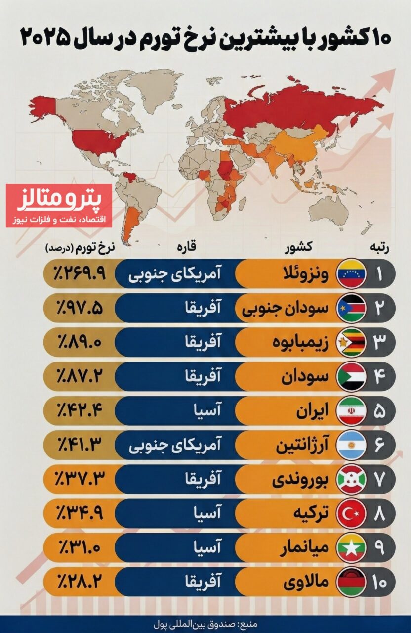 اینفوگرافیک: ۱۰ کشور دنیا با بیشترین نرخ تورم در سال ۲۰۲۵