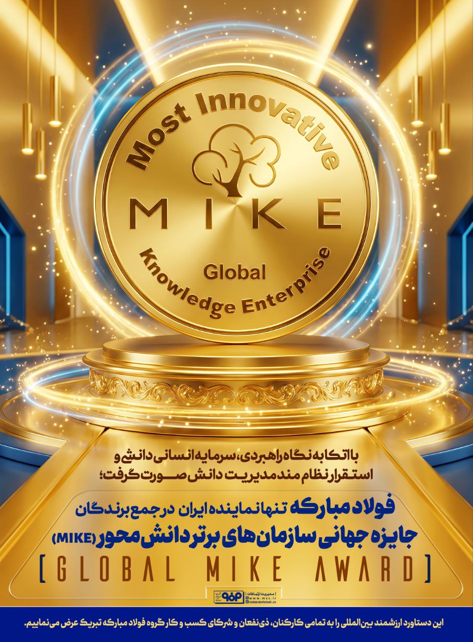 به گزارش پترومتالز، کسب «جایزه جهانی سازمانهای برتر دانشمحور (MIKE) توسط گروه فولاد مبارکه که نشاندهنده حرکت آگاهانه این مجموعه بزرگ صنعتی کشور بهسوی سازمانی یادگیرنده، آیندهنگر و متکی بر سرمایههای دانشی است را به کارکنان تلاشگر و همه ذینفعان و شرکای کسب و کار گروه فولاد مبارکه و فعالان عرصه صنعت کشور تبریک عرض مینمائیم.