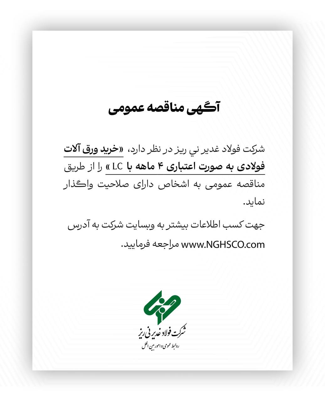 فولاد غدیر نی‌ریز با هدف فروش ضایعات تولید مناقصه برگزار می‌کند