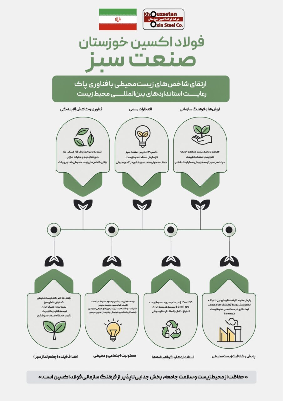 به گزارش پترومتالز، شرکت فولاد اکسین خوزستان نماد صنعت سبز ایران با تکیه بر تولید مسئولانه، حفاظت از محیط‌زیست و حرکت در مسیر توسعه پایدار محسوب می شود.