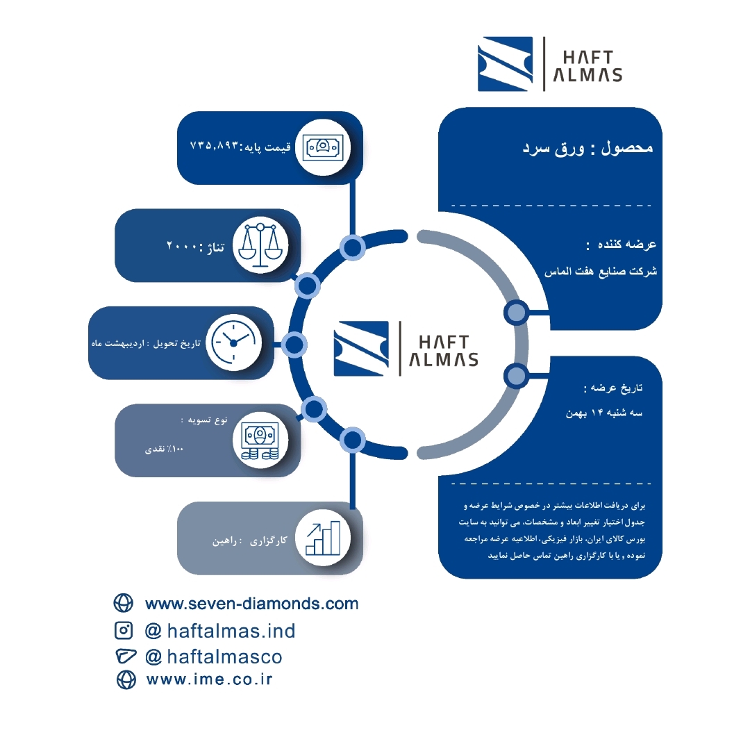 جزئیات عرضه ورق‌های فولادی شرکت صنايع هفت الماس در بورس کالا