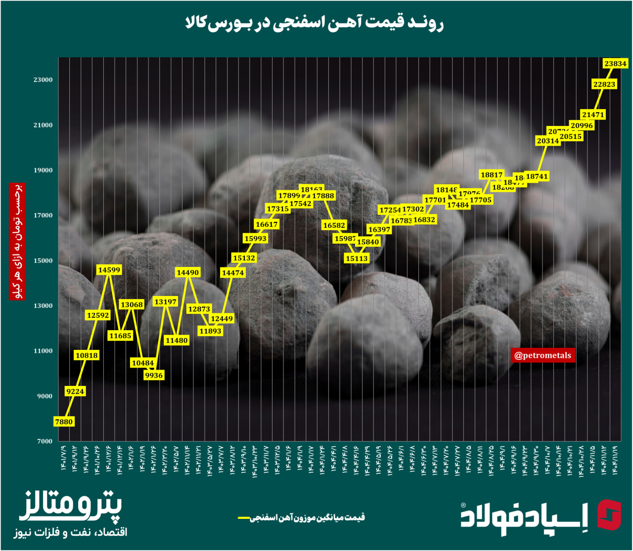 روند قیمت آهن اسفنجی در بورس کالا را در نمودار زیر ببینید: