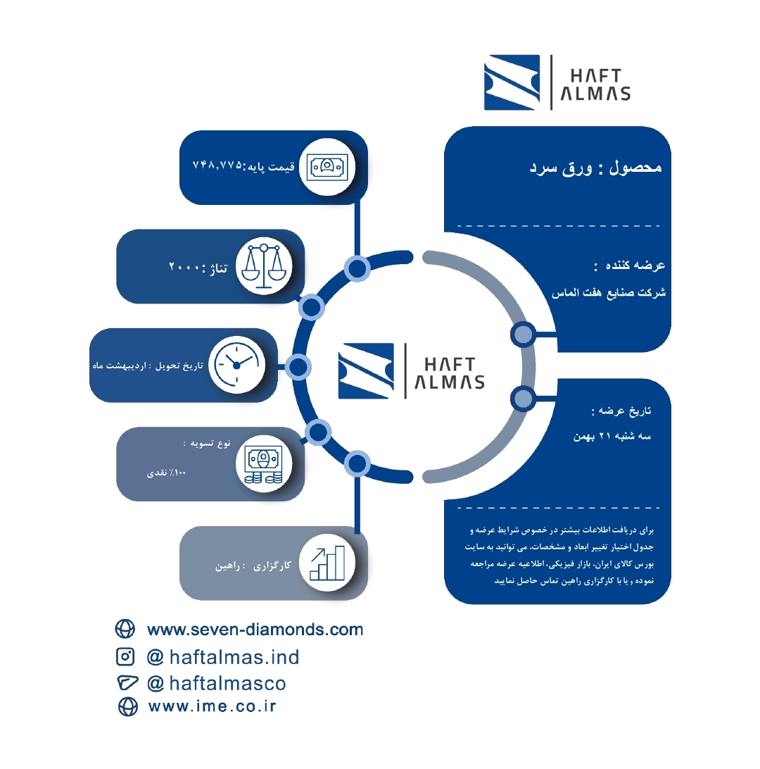 برای دریافت اطلاعات بیشتر در خصوص شرايط عرضه و جدول اختيار تغيير ابعاد و مشخصات، می توانید به سایت بورس کالای ایران، بازار فيزيكي، اطلاعيه عرضه مراجعه کرده و يا با كارگزاری راهین تماس حاصل کنند.