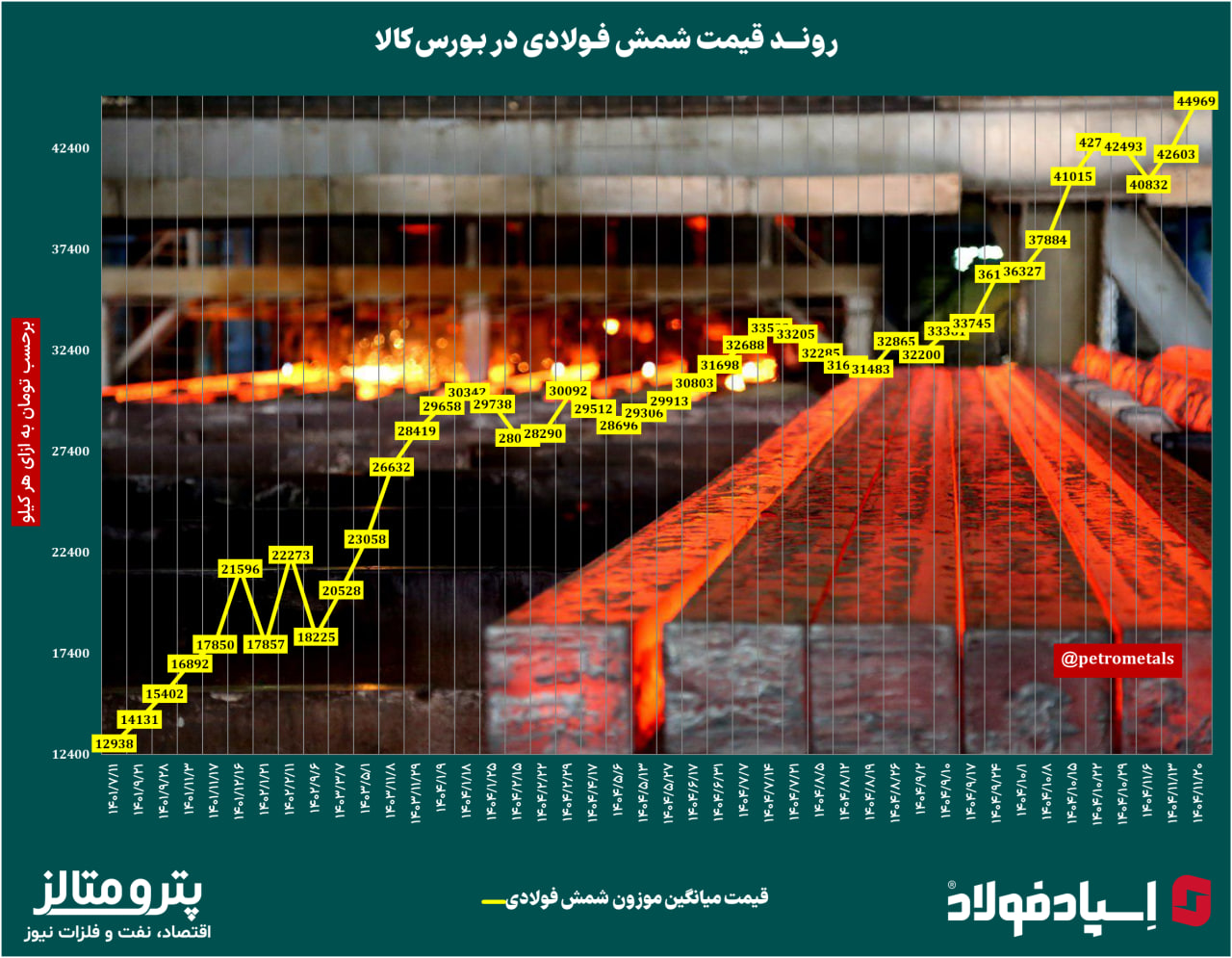 روند قیمت شمش در بورس کالا را در نمودار زیر ببینید: