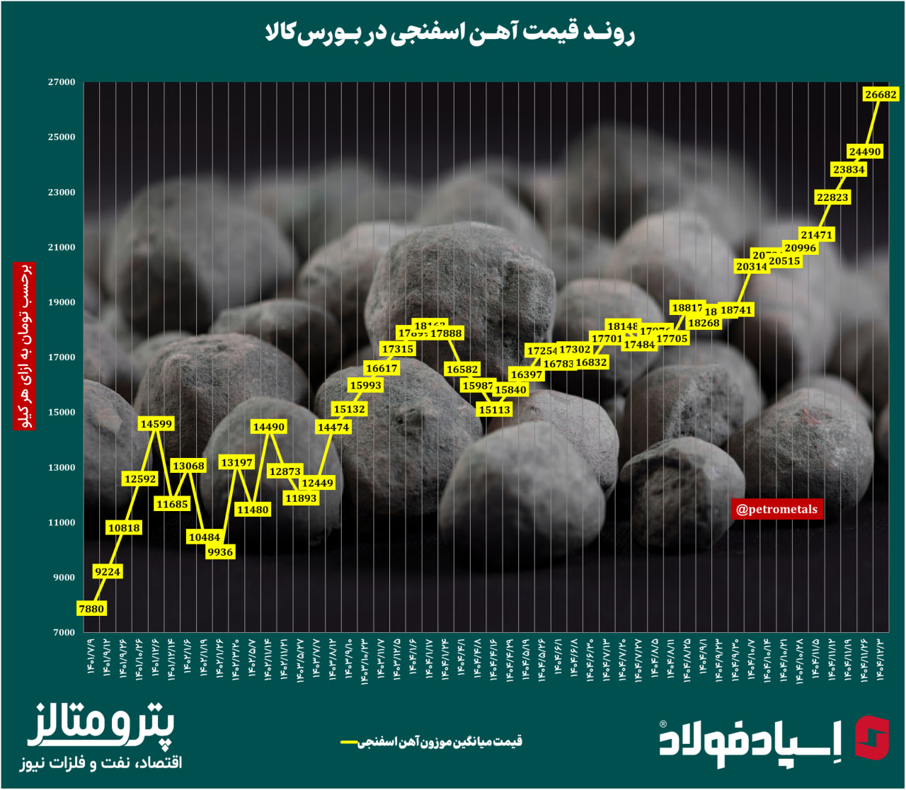 روند قیمت آهن اسفنجی در بورس کالا را در نمودار زیر ببینید: