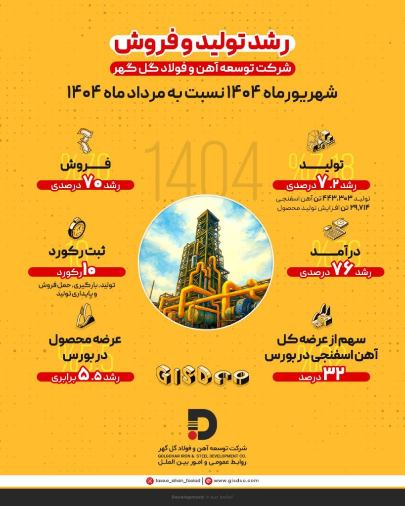 به گزارش پترومتالز، شرکت توسعه آهن و فولاد گلگهر در شهریور امسال نسبت به مردادماه، ۷.۲ درصد رشد تولید و ۷۰ درصدی افزایش فروش داشت. این شرکت در راستای تحقق شعار سال، با همت کارکنان پرتلاش و پیمانکاران علیرغم محدودیت های اعمال شده در مصرف حامل های انرژی، در ششمین ماه سال ۴۴۳۳۰۳ تن آهن اسفنجی تولید […]