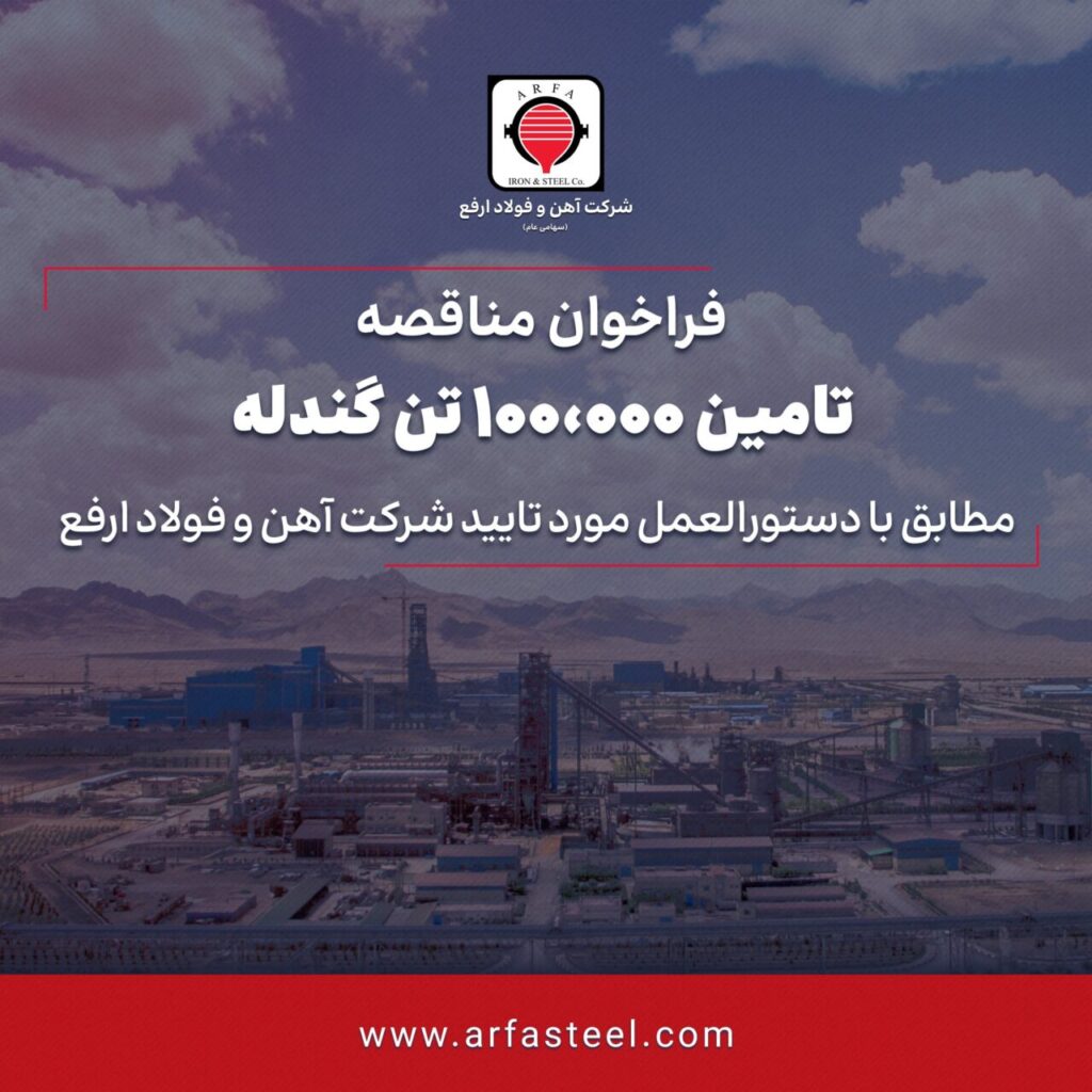 به گزارش پترومتالز، شرکت آهن و فولاد ارفع در نظر دارد تامین ۱۰۰ هزار تن گندله را از طریق مناقصه عمومی بر اساس مشخصات فیزیکی و شیمیایی مندرج در اسناد مناقصه به تامین کنندگان دارای صلاحیت واگذار نماید. این شرکت از شرکتهای متقاضی دعوت کرد اسناد مناقصه را از طریق لینک زیر دریافت نمایند: (5498=arfasteel.com/?p) مناقصه گران […]