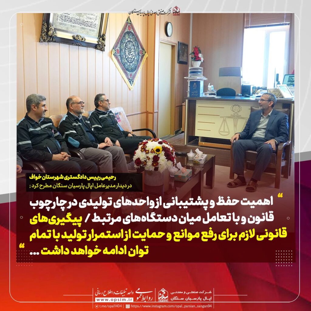 به گزارش پترومتالز، مدیرعامل شرکت اپال پارسیان در دیداری با رئیس دادگستری، به بررسی چالشهای پیشروی تولید در این مجموعه صنعتی پرداخت. در این دیدار، موضوع ناترازی انرژی بهعنوان یکی از مهمترین موانع تحقق برنامههای تولید مطرح شد سعید صادقی مدیرعامل اپال پارسیان سنگان با اشاره به تأثیر مستقیم این مسئله بر روند فعالیت شرکت، بر […]
