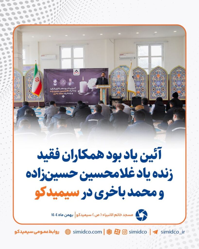 به گزارش پترومتالز، آئین یادبود همکاران فقید، زندهیاد غلامحسین حسینزاده و محمد باخری با حضور پرشور همکاران مجتمع سیمیدکو و همراهی خانواده و بستگان آن مرحومان در مسجد خاتمالانبیاء ₍ص₎ سیمیدکو برگزار شد. این مراسم در فضایی آکنده از همدلی و احترام، با تلاوت آیاتی چند از کلاماللّٰه مجید، قرائت فاتحه، مداحی و سخنرانی همراه بود […]