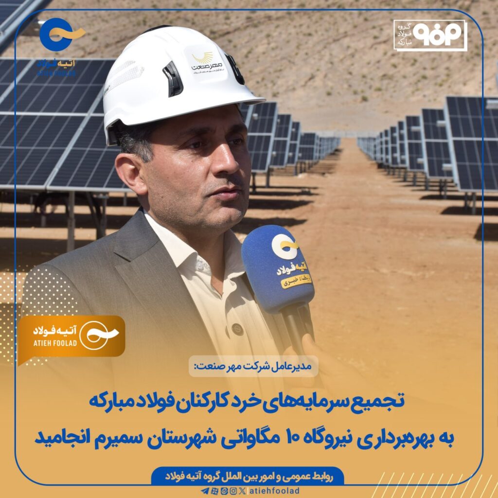 به گزارش پترومتالز، نیروگاه خورشیدی ۱۰ مگاواتی شهرستان سمیرم با حضور جمالینژاد استاندار اصفهان، طهماسبی معاون سرمایهگذاری و راهبری شرکتهای گروه فولاد مبارکه، مهدی کویتی مدیرعامل گروه سرمایهگذاری آتیهفولاد و محمد تاجمیر ریاحی مدیر عامل هلدینگ فولاد متیل به بهرهبرداری رسید. این آیین افتتاح با حضور جمعی از مدیران استانی، مسئولان محلی و مدیران برگزار شد […]
