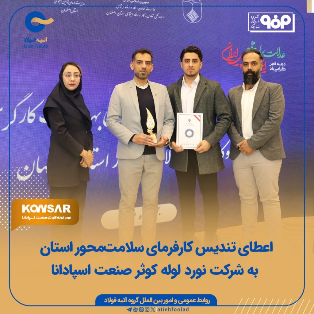 به گزارش پترومتالز، شرکت «نورد لوله کوثر صنعت اسپادانا» از شرکتهای عضو گروه آتیه فولاد، در پانزدهمین جشنواره امتنان از خانههای بهداشت کارگری برتر و کارفرمایان سلامتمحور استان اصفهان، موفق شد عنوان «کارفرمای سلامتمحور استان اصفهان در سال ۱۴۰۴» را در بخش واحدهای بالای ۵۰ نفر از آنِ خود کند و مورد تقدیر قرار گیرد. […]