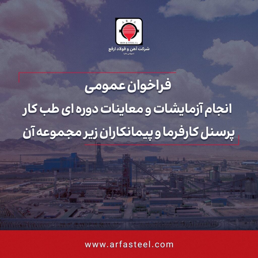 فراخوان عمومی انجام آزمایشات و معاینات دوره ای طب کار پرسنل کارفرما و پیمانکاران زیر مجموعه آن