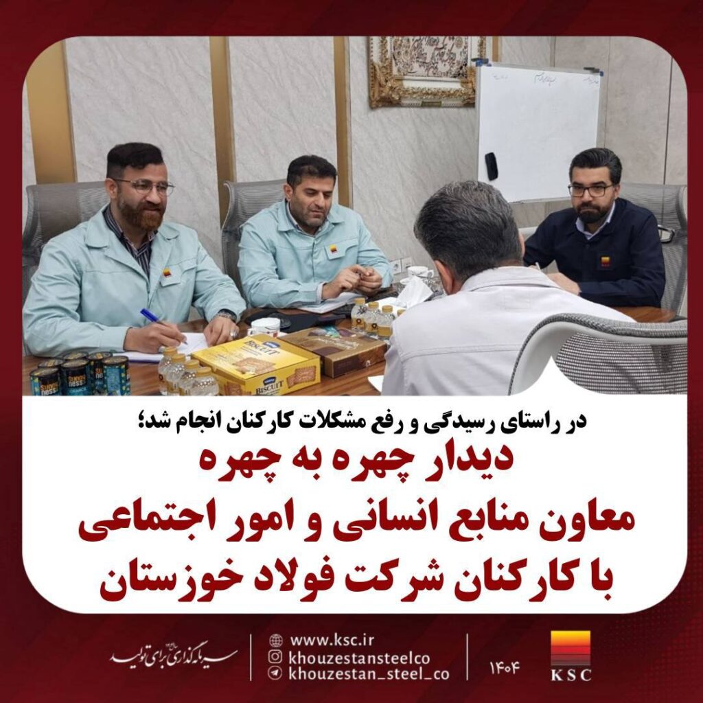 دیدار چهره به چهره معاون منابع انسانی و امور اجتماعی با کارکنان شرکت فولاد خوزستان در راستای رسیدگی و رفع مشکلات کارکنان