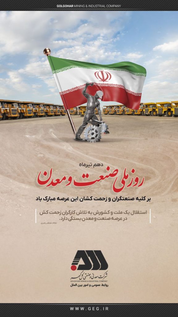 به گزارش پترومتالز، روابط عمومی شرکت معدنی و صنعتی گل گهر با انتشار پوستری که مزین به سخنان رهبری بود، فرارسیدن روز ملی صنعت و معدن را به کلیه صنعتگران و زحمت کشان این تبریک گفت.