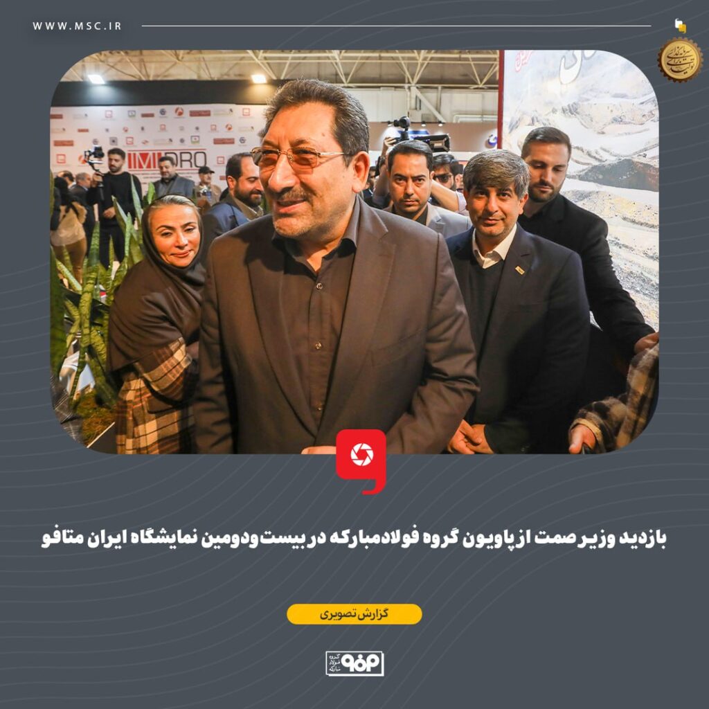 بازدید وزیر صمت از پاویون گروه فولاد مبارکه در بیست‌ودومین نمایشگاه ایران متافو