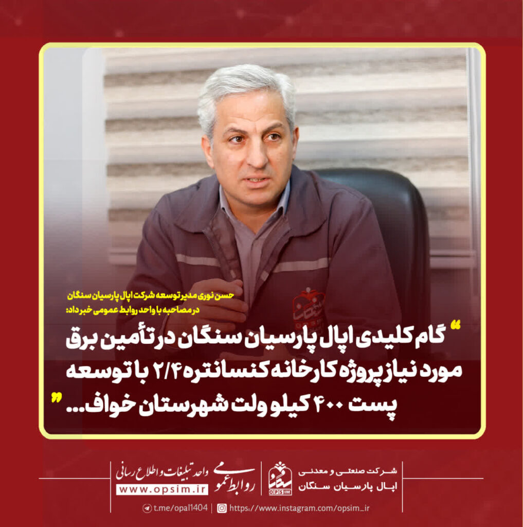 گام کلیدی اپال پارسیان سنگان در تأمین برق پروژه کنسانترهسازی با توسعه پست ۴۰۰ کیلوولتی شهرستان خواف